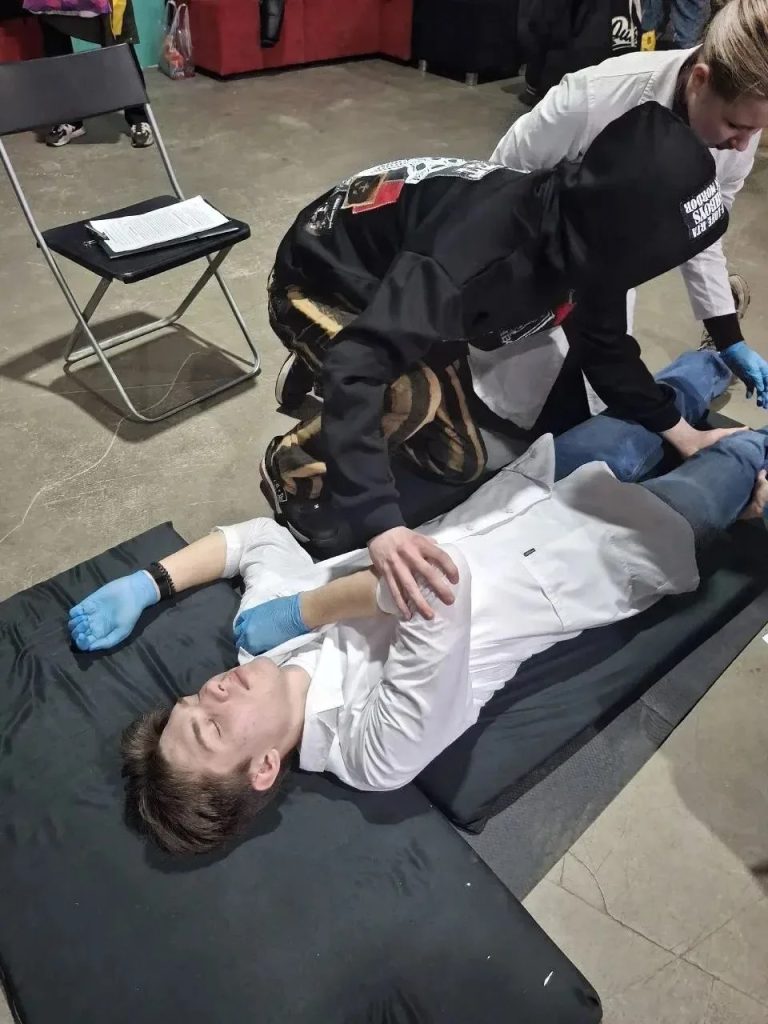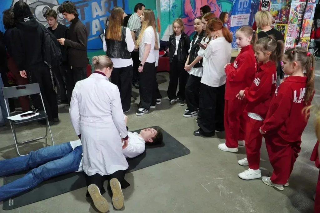 Волонтеры-медики нашего колледжа Евгений Кривошеин и Виктория Кокарева проводили мастеркласс по оказанию первой помощи и рассказывали, как помочь человеку в экстренной ситуации.