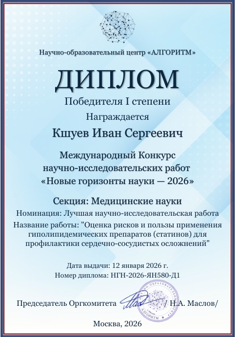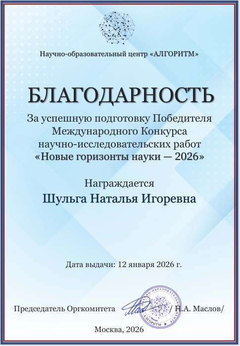 Наши студенты блестяще проявили себя на Международном конкурсе научно-исследовательских работ «Новые горизонты науки — 2026», организованном Научно-образовательным центром «АЛГОРИТМ».