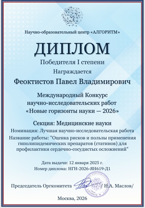 «Оценка рисков и пользы применения гиполипидемических препаратов (статинов) для профилактики сердечно-сосудистых осложнений».